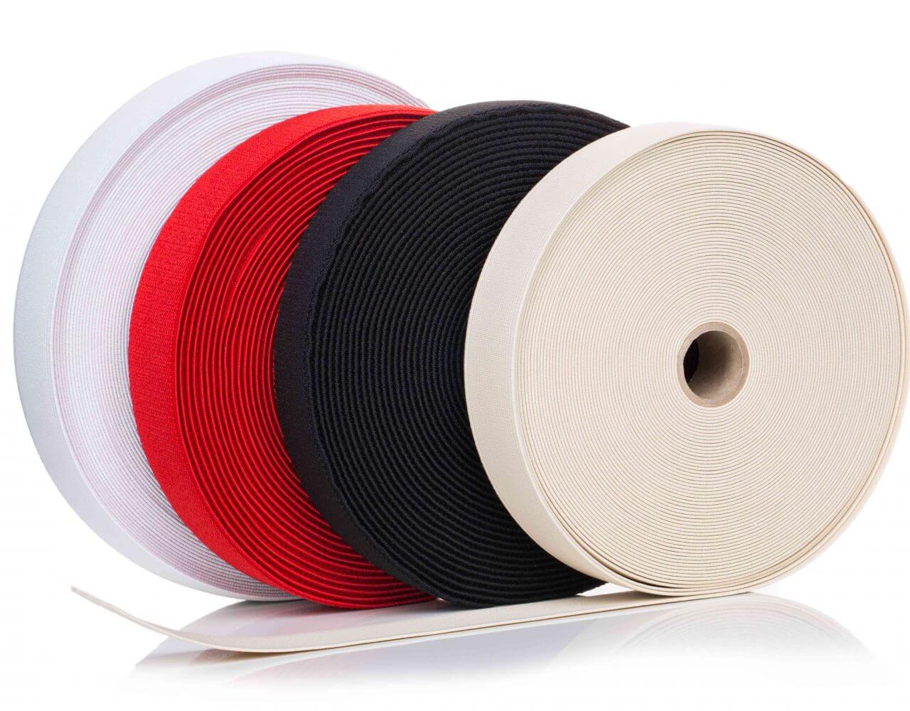 Flexible, high-strength elastic bands for waistbands, cuffs, and fitted tailoring.